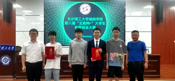 为增强大学生创新创业意识,凝聚创新力量,5月26日晚上,城南学院在金盆岭校区四教报告厅举办第八届“互联网+”大学生创新创业大赛决赛。学院党委书记李修春、党委副书记陶传谱、副院长刘洪深和朱广峰、新利官网开户 材料学院创新创业办主任贺浩和优秀校友长沙亿鸿汽车租赁有限公司董事长周乐意、湖南璟翰智能科技有限公司总经理汪洋出席大赛并担任评委。