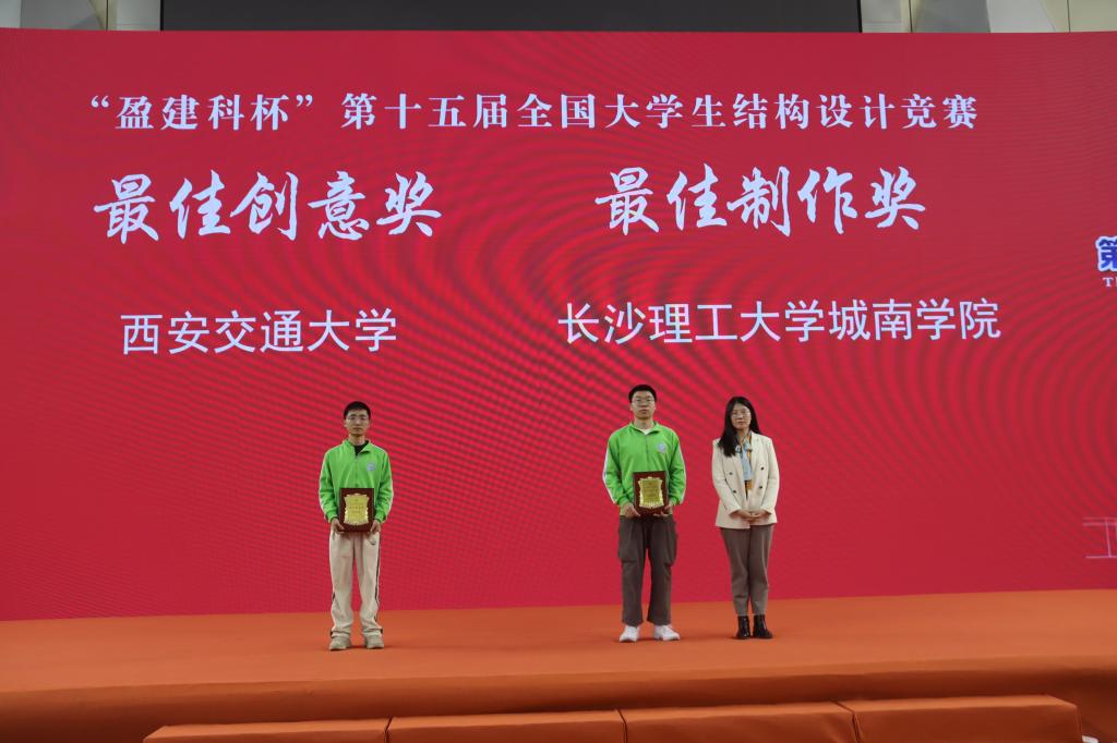 326日,第十五届全国大学生结构设计竞赛在太原理工大学圆满落幕。来自全国110所高校的111支队伍齐聚一堂,经过激烈角逐,城南学院2020级本科生雷缮诚、乐宇航和2021级本科生潘鑫烨所组成的参赛队一举夺魁,获得本届大赛特等奖。同时,学院还获得“优秀组织奖”和“最佳制作奖”。全国大学生结构设计竞赛是教育部和财政部联合发文批准的9个首批全国大学生学科竞赛资助项目之一,是土木建筑工程领域级别最高、规模最大的学生创新竞赛,被誉为“土木皇冠上最璀璨的明珠”。