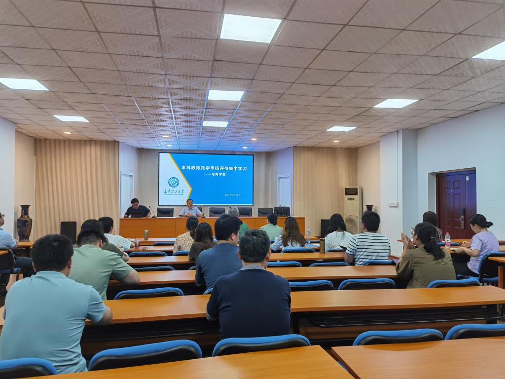 9月18日下午,学院在金盆岭二号教学楼201召开本科教育教学审核评估学习大会,全体教职工参加,副院长靳攀科主持会议。