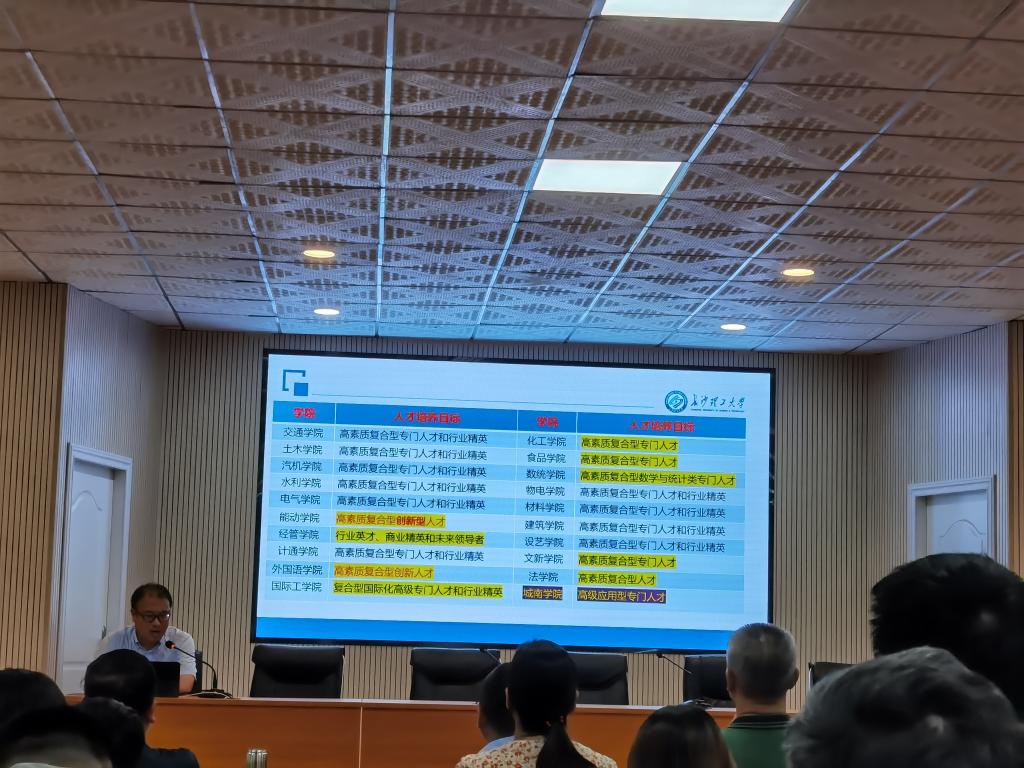 副院长刘洪深对教育部新一轮本科教育教学审核评估作了详细介绍。本轮审核评估坚持以“立德树人”为根本标准,“破五唯、四回归”,从“7个大类、78个指标点”进行考核,对标第二类第一种(B1),以学术型人才培养为主要方向。他强调,一定要准确把握新一轮审核评估与上一轮审核评估的变化,全面系统加强学习,深刻理解、准确把握新一轮审核评估精髓要义和指标内涵要求。