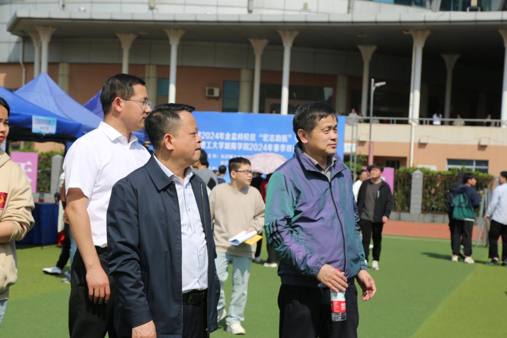 城南学院党委书记施一满、院长赵华、党委副书记陶双、副院长靳攀科、朱广峰深入活动现场,了解双选会开展情况,积极与参会单位和求职学生洽谈交流。施一满表示,双选会是围绕社会需求和行业前沿组织筹备的,既为学生充分就业提供了宽广平台,也进一步深化了校企合作、实现了校企双赢。他勉励同学们要深耕专业领域,把握学校提供的就业实习机会,了解企业需求、适应企业环境、找准职业发展定位,提升自身的核心竞争力,积极投身到求职实践中。