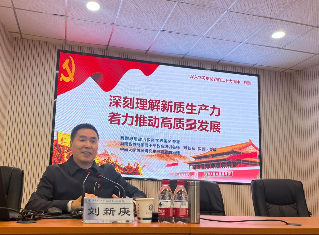 施一满在总结中指出,刘新庚教授的讲座逻辑严谨,内容丰富,深入浅出地讲解了新质生产力的时代背景、科学内涵、重大意义,进一步加深了大家对新质生产力的全面理解。他要求,广大师生要不断学习,自觉用习近平新时代中国特色社会主义思想武装头脑,尤其是教育工作者要深刻思考如何加强新型劳动者的培养,在真抓实干中见成效,为全面推进中华民族伟大复兴贡献力量。