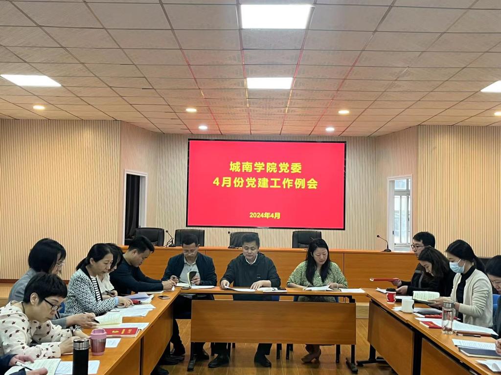 4月19日上午,城南学院党委在2教201召开4月份党建工作例会,学院党委书记施一满、副书记陶双、纪委书记朱广峰以及全体师生党支部书记参会。施一满主持会议。
