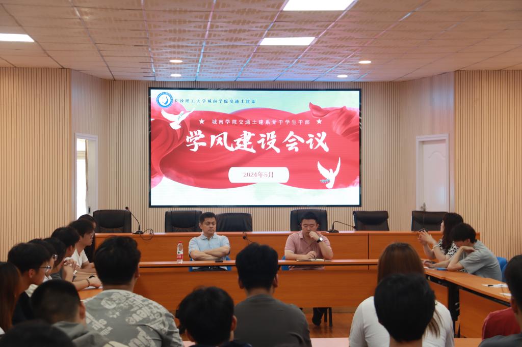城南学院交通土建系在金盆岭校区2教201召开学生干部学风建设会议。会议邀请城南学院党委书记施一满出席,交通土建系系主任张强、23级辅导员马玉容及各班班长、学委、团支书等学生干部参加会议。会议由系团总支书记武建伟主持。