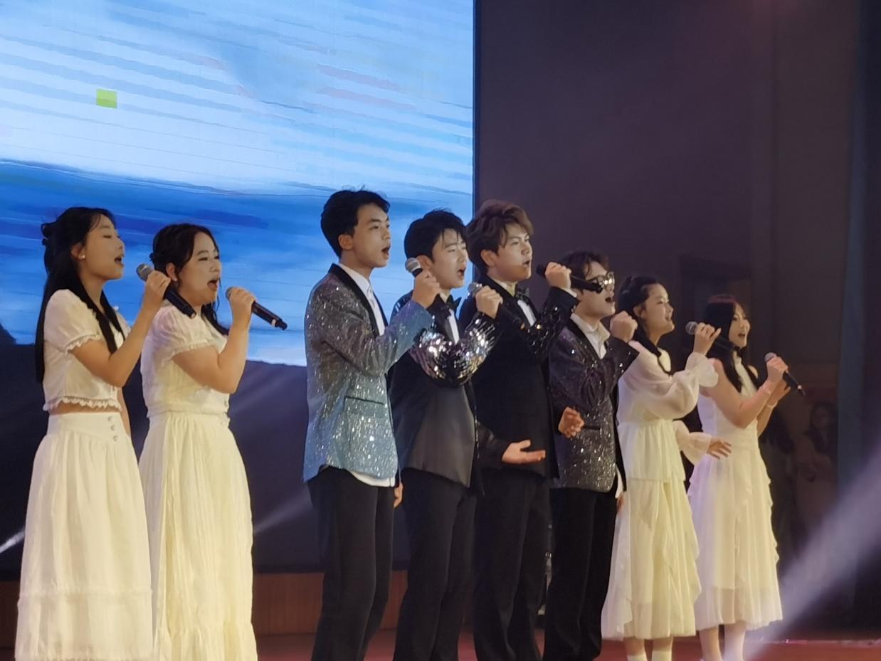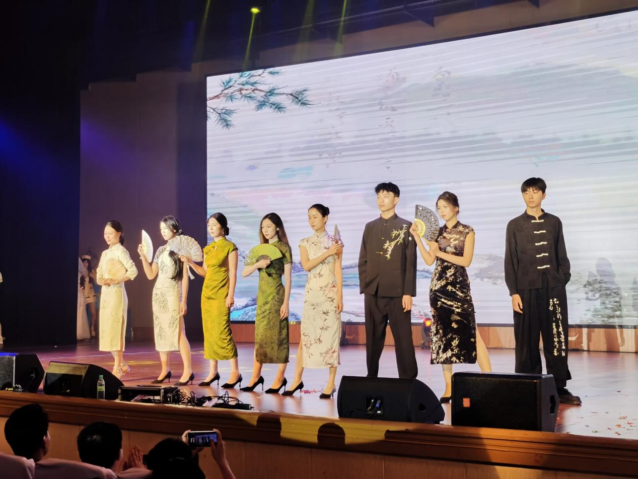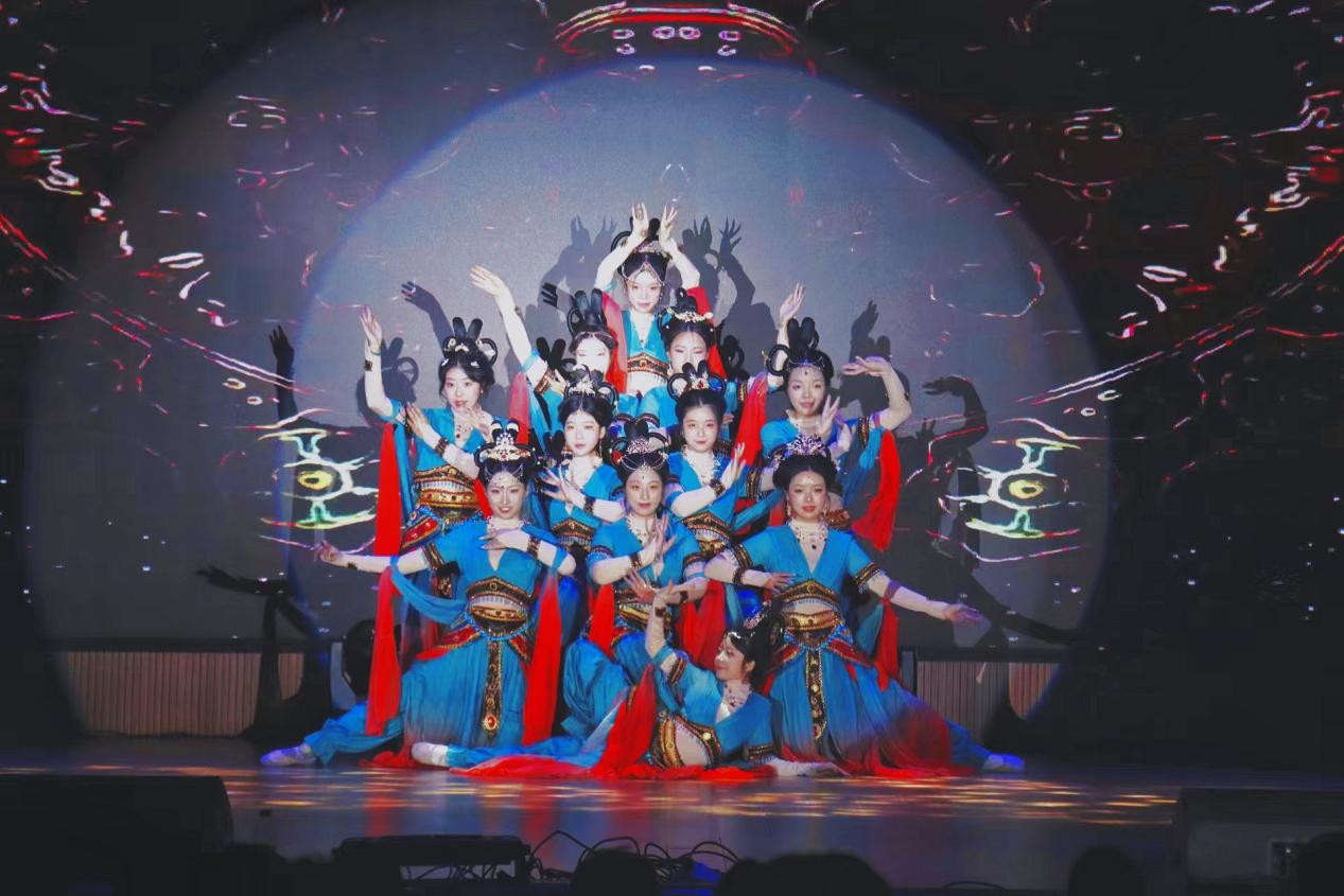 晚会现场,灯光璀璨,气氛热烈而温馨。舞台上,精彩节目轮番上演以敦煌壁画中的仙女和莲花为创作灵感,舞蹈《沁莲》通过舞者们轻盈的舞步和灵动的身姿,展现了敦煌文化的独特魅力和莲花的纯洁美丽;合唱《像你这样的朋友》演绎出大学青春校园友谊的弥足珍贵,仿佛一位旧友的拥抱,温暖而熟悉;一首爱国诗歌《青春中国》的深情朗诵,鼓舞青年以行动书写着国家的明天;晚会最后是大合唱《我爱你中国》,在一首激昂澎湃、饱含深情的经典之歌中本次晚会落下帷幕。
