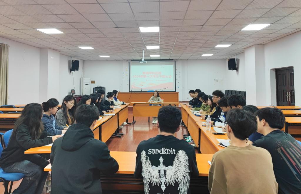 为加强学生会内部建设,提升学生干部思想觉悟,提高学生会成员的工作素养,4月9日中午12点30分,在二教101召开2024年学生干部大会。会议由城南学院团委书记李诺老师主持,各部门学生干部进行工作汇报。