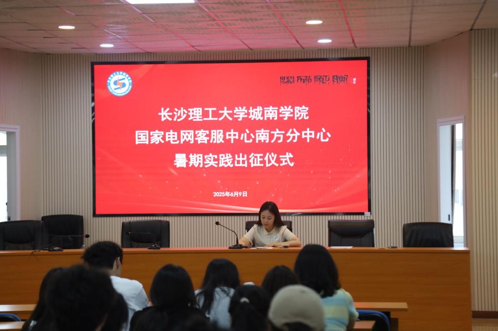 城南学院“国家电网客服中心南方分中心暑期社会实践活动”出征仪式在二教201会议室举行。学院党委副书记陶双、团委书记李诺、电气工程系辅导员向陈及全体实践学员共同参与此次启动仪式。