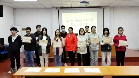 为进一步提升学风建设水平,表彰学风建设工作中涌现的先进典型,进一步营造比、学、赶、帮、超的学习氛围, 11月10日晚,水利计通系在2教101大会议室召开2020级学风建设表彰大会,20级辅导员李琳老师、各班班委、全体受表彰同学参加会议。