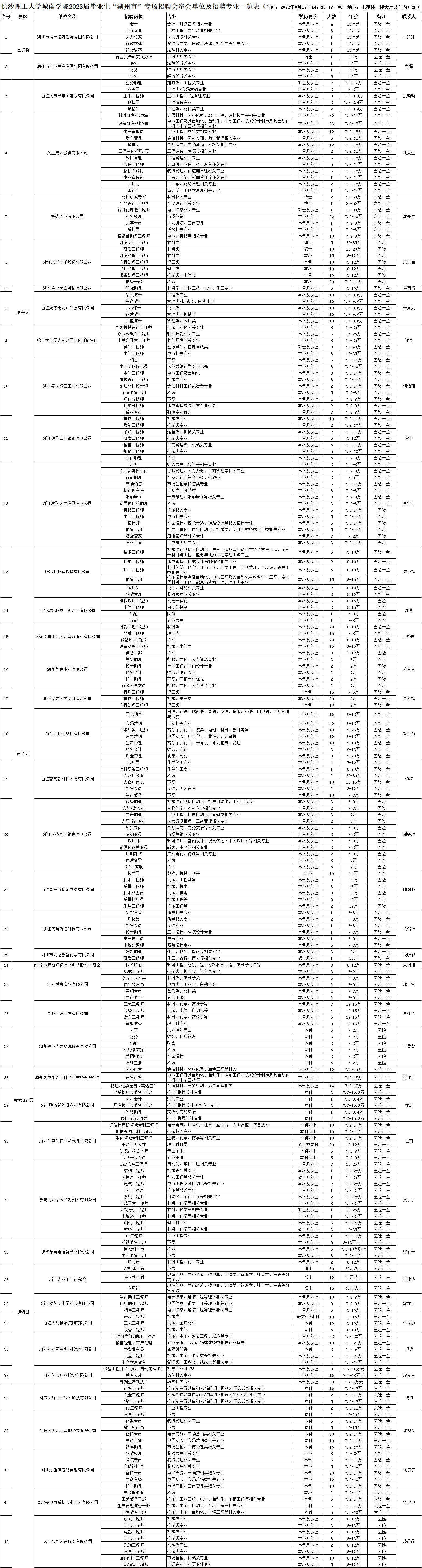 新利官网开户 城南学院2023届毕业生“湖州市”专场招聘会参会单位及招聘专业一览表 9.17.xlsx