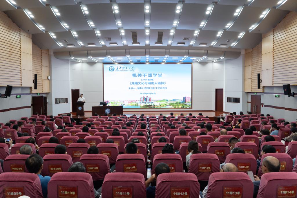 6月26日下午,湖南大学岳麓书院国学研究院院长朱汉民教授应邀莅临我校“机关干部学堂”,以《湖湘文化与湖南人精神》为题开展了专题授课。