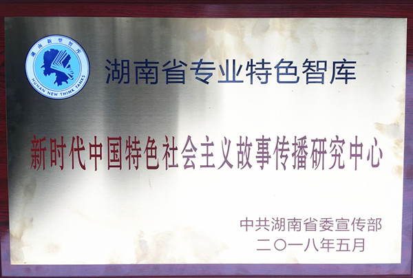 由省委宣传部指导、湖南省社会科学院主办的“湖湘智库论坛(2018)暨省专业特色智库建设会议”于11月20日在湖南宾馆召开。会议对省级首批专业特色智库进行了授牌,全省共有26家智库入选。由我校申请的、校党委书记付宏渊担任首席专家的“新时代中国特色社会主义故事传播研究中心”专业特色智库顺利入选,并由省委常委、省委宣传部部长蔡振红授牌。