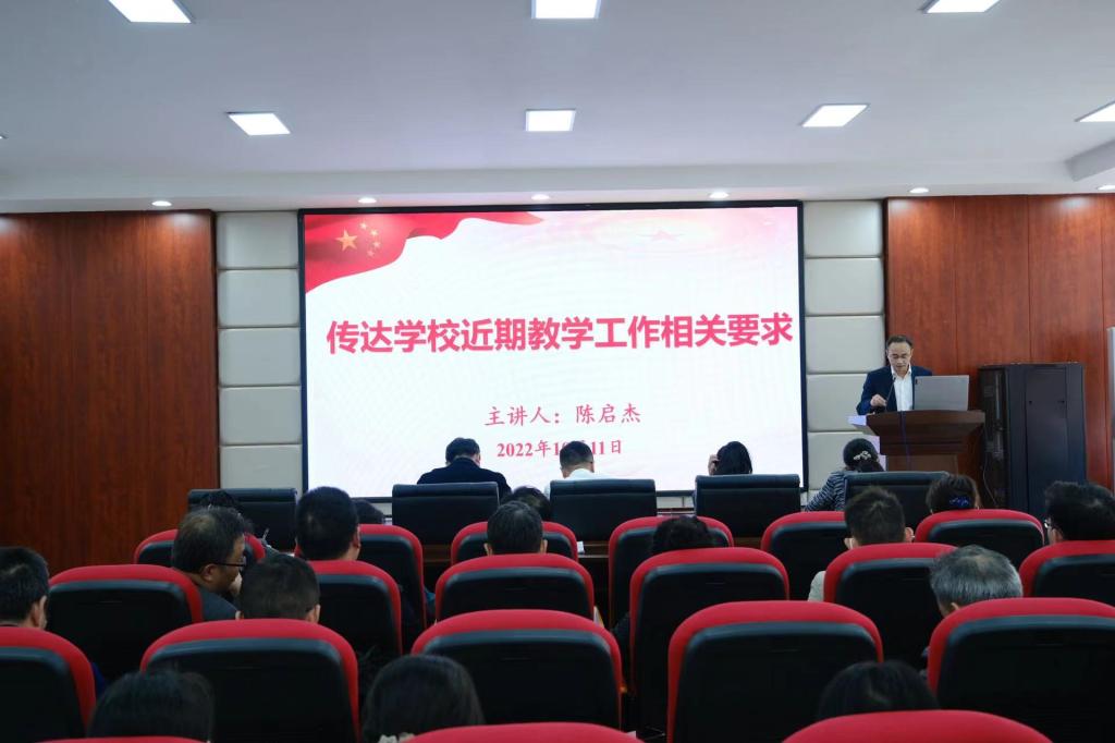 副院长陈启杰传达了学校《关于稳定教学秩序、加强课堂管理、保障教学质量的通知》和《关于试卷及相关归档材料的检查通知》,重点强调了实验教学的规范性,实验、实习、课程设计的文档规范,对课程教学文档检查工作,毕业设计的创新等提出了规范性要求。