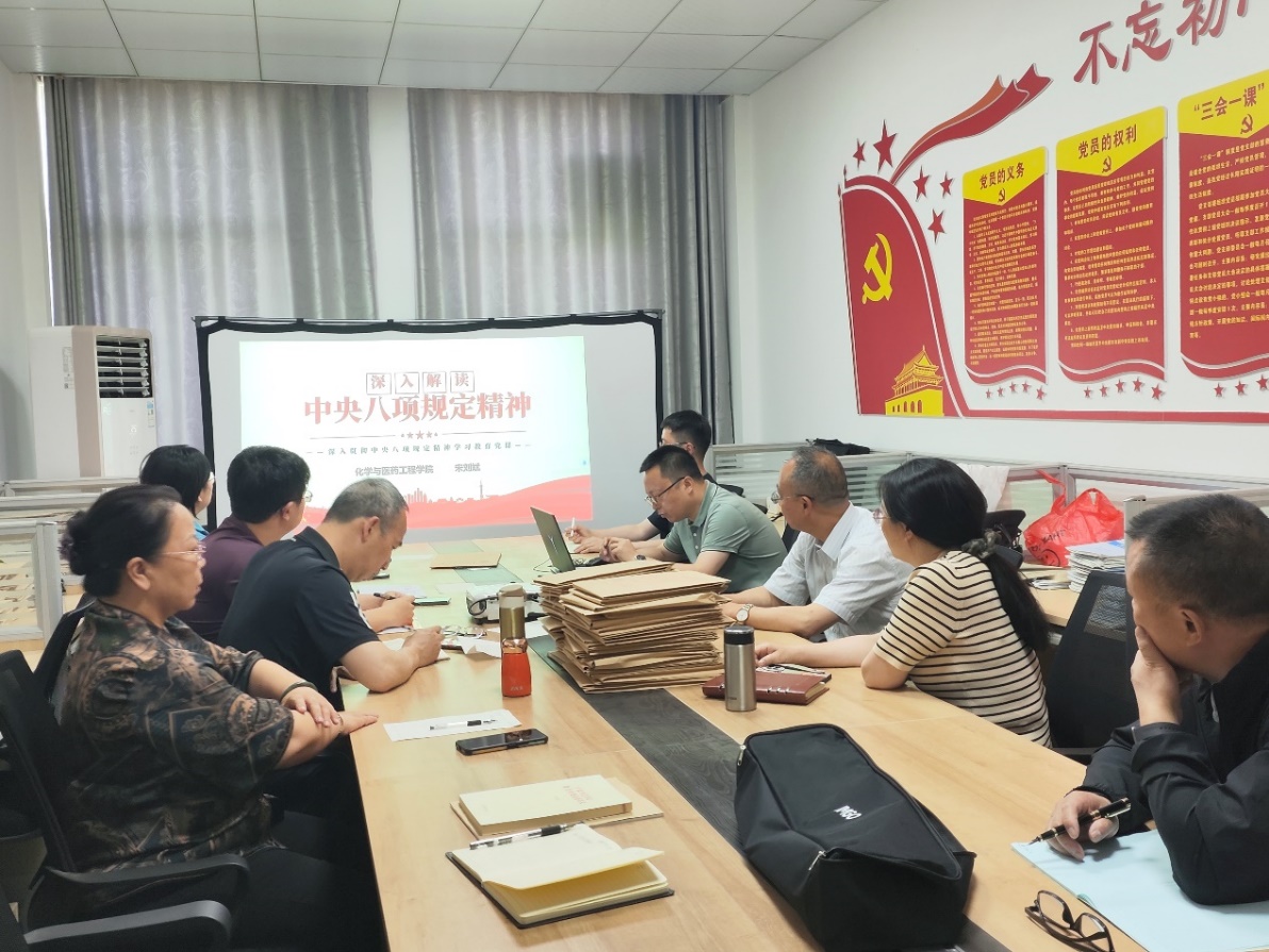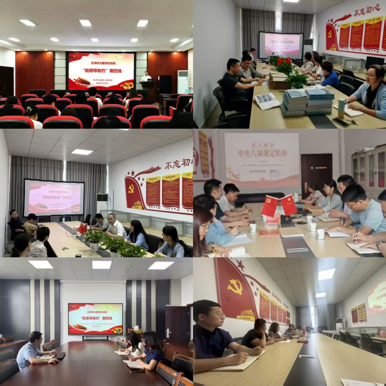 委员会开展深入贯彻中央八项规定精神学习教育实施方案》文件精神,近日,化学与医药工程学院党委组织开展深入贯彻中央八项规定精神学习教育党课——“院领导有约”宣讲报告会(第四场),围绕中央八项规定精神进行深入解读。本次专题党课由学院党委统一部署,各党支部具体组织实施。学院党委书记宋刘斌在化学工程党支部讲授党课,院长张跃飞在学生党总支授课,党委副书记、副院长李家春在应用化学党支部授课,副院长陈启杰在化学党支部授课,副院长喻林萍在实验中心党支部授课,党委委员欧阳展平在行政党支部授课,党委委员李江胜在轻化工程党支部授课。