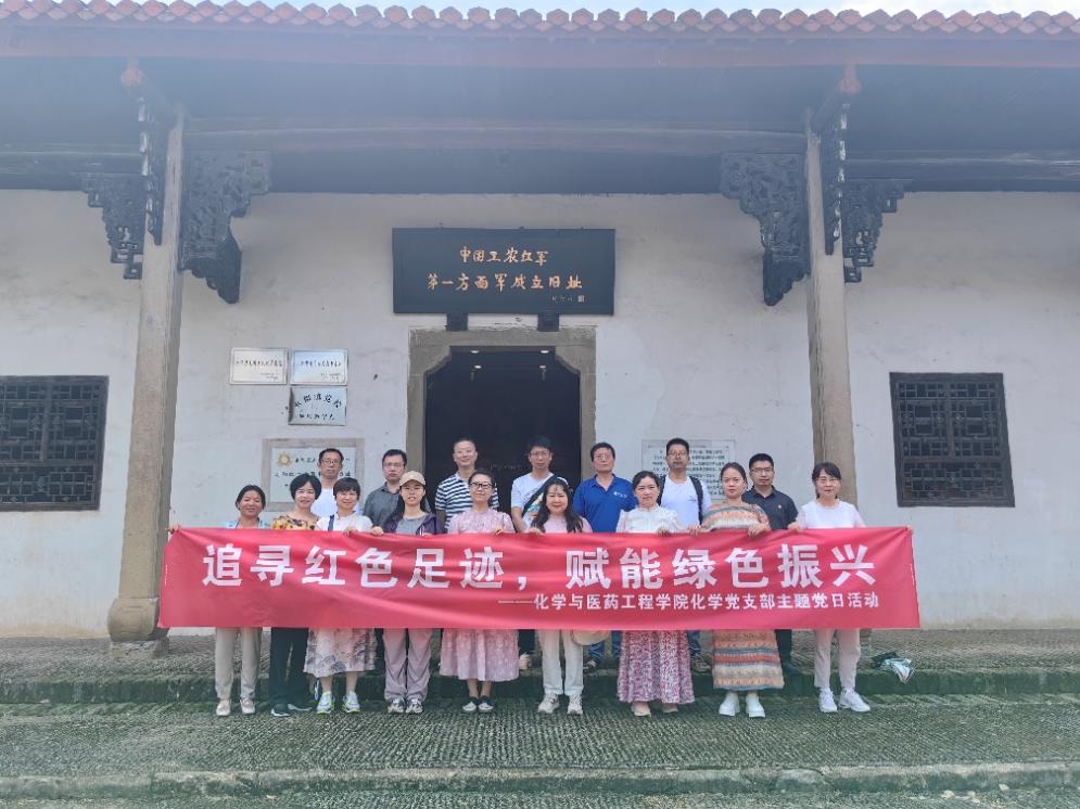 化学与医药工程学院化学党支部赴浏阳市开展“追寻红色足迹 赋能绿色振兴”主题党日活动。支部成员先后参观了中国工农红军第一方面军成立旧址——李家大屋以及湖南省苏维埃政府旧址,在浏阳市特色水果种植基地开展了爱心助农活动。通过重温革命历史,传承红色基因,汲取奋进力量,党员们以实际行动践行初心使命,积极投身乡村振兴事业。