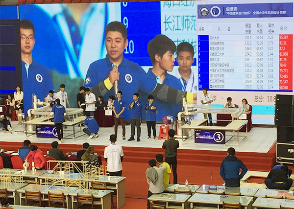 2005年至2017年,全国大学生结构竞赛已举办11届,前10届是单一全国竞赛组织形式,今年采用各省(市)分区赛与全国总决赛两个阶段的全新竞赛组织模式,扩大了参赛高校和学生受益面。各省(市)分区赛积极性高涨,组织有效,参赛高校506所、1182支参赛队,参赛师生高达6000余人次,并由此产生了107所高校108支参赛队伍进入全国总决赛。在本届湖南省分区赛后,湖南大学、湖南科技大学和长沙学院及我校共5支代表队获得参加全国总决赛资格,在省赛没有使用过国赛赛题和材料的不利背景下,两支队伍仍然脱颖而出,体现了土木工程学院“适时势、厚基础、宽口径、辅项目”培养模式在学生培养上所取得的卓越成效,也展现了长理学子扎实的理论功底、活跃的创新思维、较强的动手能力和团队协作能力。