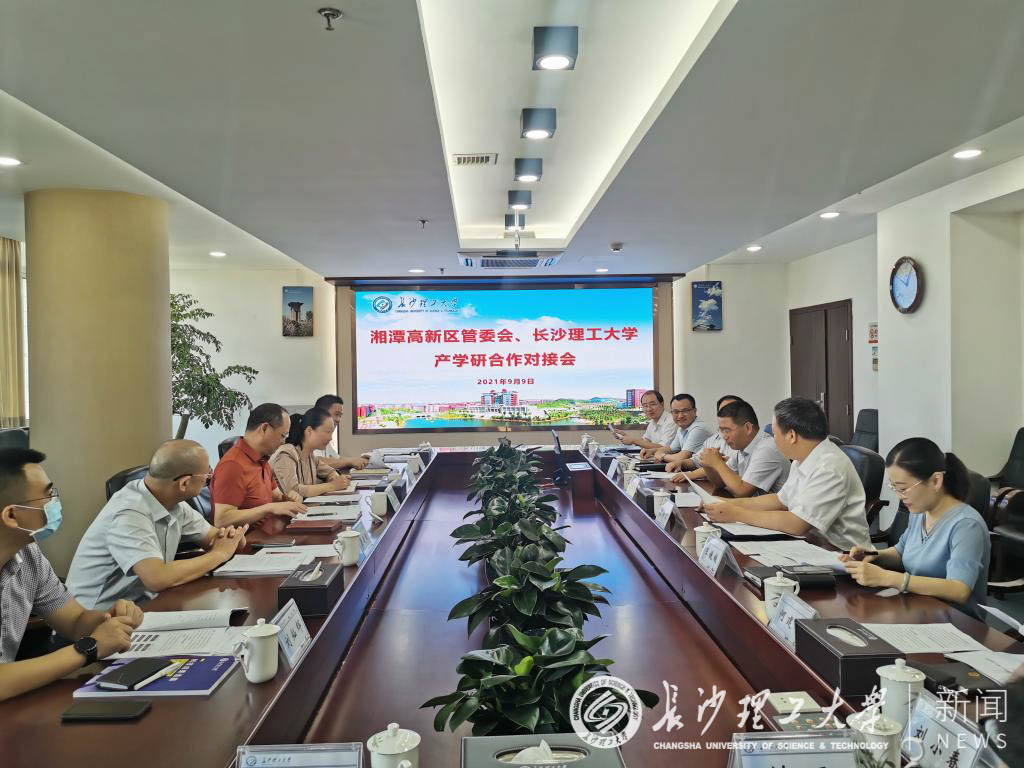 9月9日上午,我校与湘潭高新区管委会产学研合作对接会在云塘校区一办公楼五会议室举行。校长曹一家,副校长曾祥君,科研部、社科处、成果转化中心等部门负责人及相关学院负责人,湘潭高新区管委会副主任吴小波,湘潭高新区科技创新局局长文平,湘潭高新区产业发展局副局长刘灿辉及企业家代表、湖南世优电气股份有限公司董事长彭建国、湖南华亿高新科技成果转化服务有限公司董事长杜良忠等参加会议。