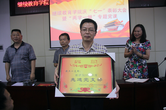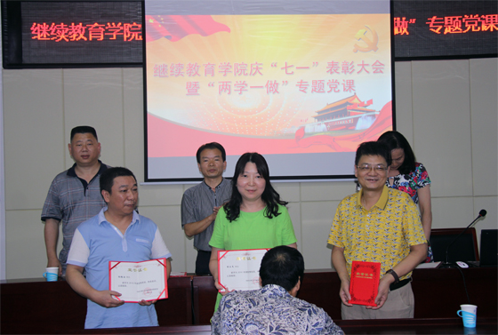 党课开始前,院党委副书记方碧波宣读了《关于表彰继续教育学院先进党支部、优秀共产党员的决定》。院领导为获奖的教工一支部和喻国荣等5名优秀共产党员颁发了奖牌和证书。