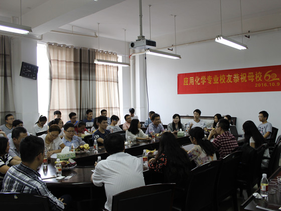 校友们首先表达对母校60周年庆典的祝福,欣喜云塘新校区办学环境高大上,感恩任课教师的谆谆教诲,随后汇报了自己的工作经历、感受,对在校师弟师妹提出建议。1993级杨学林和2002级杨波,以他们硕士、博士求学求职经历及工作后取得傲人成绩阐述了“英雄无论出身”,关键要有自己的想法,以踏实的作风,辛勤劳动获得他人的认可。从电厂化学技术岗位干起后升迁到人资部主任的1996级校友朱蓓蕾和同样从专业技术岗位转向政工岗的2001级刘宇峰提出,先做人再做事,对于刚入职毕业生,首先应端正自己工作态度,最好先从生产的一线做起,积累经验,勤学多问,厚积薄发。2000级彭海泉校友提出在企业工作,钻研专术技术是一个方面,同时也要兼修管理方面的知识,加强与人合作交流能力。 最后,应校友们结合当前电力企业对人才的需求,对应用化学本科专业培养方案提出加强工程(如机械制图、自动控制)、创新创业、管理方面课程的设置。