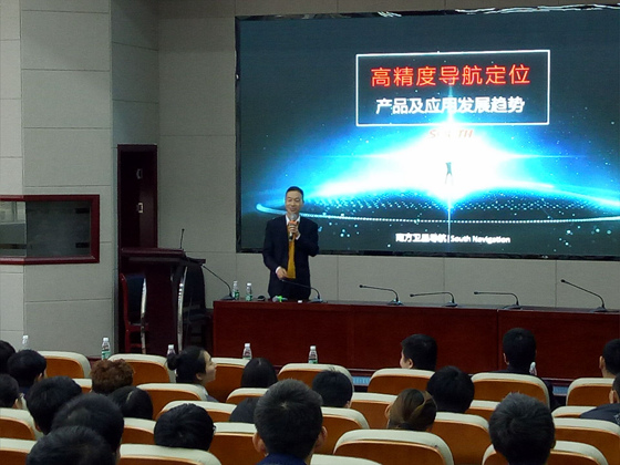 活动首个环节,由南方测绘集团长沙分公司总经理邓万军和交通学院副院长闻德保共同完成战略合作伙伴的授牌仪式。随后,向高照和丁永祥分别就《由南方测绘的发展看中国测绘地理信息行业》和《高精度卫星导航产业应用趋势》两个主题进行讲座,为现场的同学充分展示了测绘行业的发展趋势和测量设备的发展与应用。