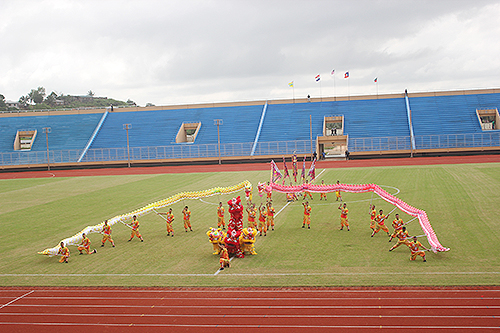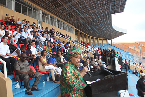 蒙罗维亚时间2017年7月22日上午9点30分,利比里亚国家体育运动场(Samuel Kanyon Doe Sports Complex)落成典礼仪式在SKD内隆重举行。利比里亚总统埃伦·约翰逊-瑟利夫(Ellen Johnson-Sirleaf)、副总统约瑟夫·博阿凯(Joseph N. Boakai)、我驻利使馆李壮代办、经商处肖明湘参赞、利外交部部长马扬·卡马拉(Marjon Vashti Kamara)、青年体育部部长萨•恩托(Saah Charles N'Tow)、蒙罗维亚和佩妮斯维尔市长等政要均出席了活动。利比里亚大学孔子学院师生、中国驻利维和警察防暴队及驻利中资企业代表也受邀参加。