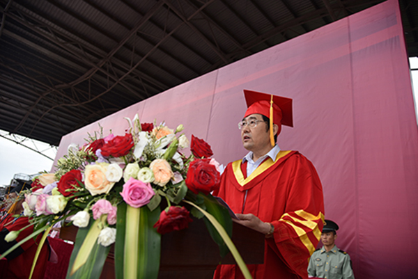 来自物电学院的李新普作为本科毕业生代表发言,分享了自己投笔从戎、重返校园的经历,表示将秉持学校“博学力行守正拓新”的校训,脚踏实地,艰苦奋斗,乐于奉献,锐意进取,去创造属于自己的明天。