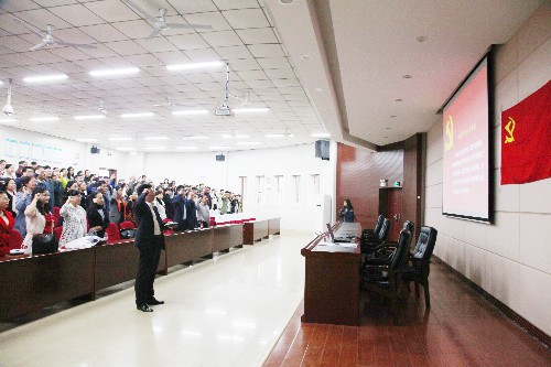 11月7日下午,经管学院在云塘文科楼A200召开师生党员大会,举行重温入党誓词主题党日活动和学习宣传贯彻落实党的十九大精神专题辅导报告会。报告会由院党委书记王宏主讲,学院师生党员近300人参加。