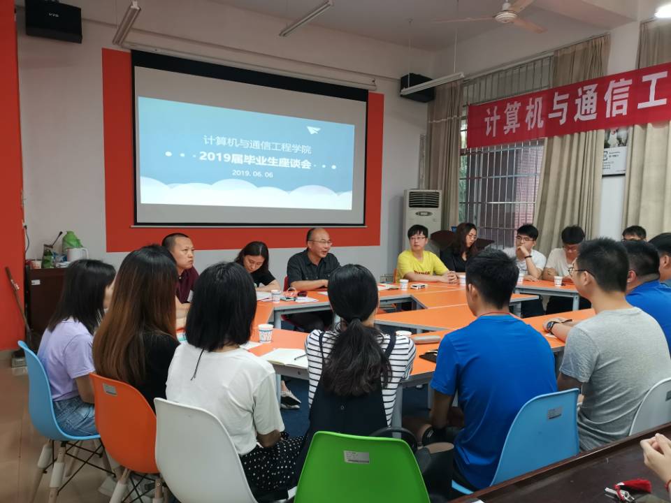 6月20日下午两点,计通学院2019届本科、研究生毕业生代表座谈会在学院B103举行。党委书记甘为、副院长王威、院党委副书记兼副院长陈华及辅导员老师潘枝花、易亭亭与毕业生代表相聚一堂,共叙大学几年的学习生活和成长感悟,对学校和学院的教学、管理等各方面提出自己的意见和想法,共同探讨学院的发展建设。在轻松愉快的交流氛围中,毕业生代表畅所欲言,结合自身实际情况,对各专业培养方案、课程设置、实践实习、活动能力提升、学生管理、宿舍及专教生活等方面提出了合理化建议。同时也表达了对学校、学院的不舍与感恩之情,感谢在成长之路上关心与帮助自己的老师与同学,希望自己的提议能够为学院更好的发展出一份力。在与毕业生代表的亲切交谈中,甘书记、王院长陈华书记及辅导员老师也就同学们的意见给予解答,承诺将不断改进和有效解决同学们提出的问题,在后续的教育教学及学生工作中进一步的落实与完善,并对毕业生们提出的诚恳意见和合理建议表示感谢。此次活动不仅拉近了师生之间的距离,让同学们将多年学习生活中的遇到的问题及期望一一反馈给学院,也使学院能够更全面的了解同学们对学院教学及学生工作的看法,为学院接下来更好的发展提供了宝贵的参考意见。
