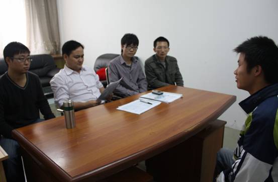 本次模拟面试活动从上午八点半开始,下午六点半结束,每个班安排一个小时。面试考官由学院就业专干伍接朝老师和三位经过多次面试并已成功签约的同学担任。其中签约深信服科技有限公司的徐安贵主要协助销售方面的面试,签约深信服科技有限公司的谷智勇和签约创维科技公司的邓海协助技术方面的面试。本次模拟面试完全参照IT企业选拔应届毕业生的模式,根据岗位的差别,分别设置了单面、群面和无领导小组讨论等形式,并按照技术面和人力资源面的步骤进行,让毕业生们全程感受了面试的过程和种类。每个班的模拟面试活动结束后,学院就业专干伍接朝老师针对面试过程中出现的问题一一进行了点评,并要求同学们认真复习专业基础知识,准备好自我介绍和项目实践经历。