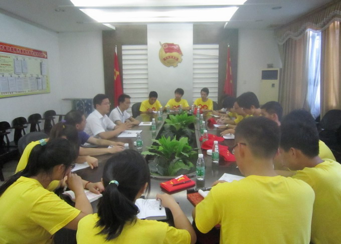 计算机与通信工程学院的大学生“三下乡”社会实践团的全体成员一起座谈。座谈会由彭洪兵主持。座谈会后,团市委领导与新利官网开户