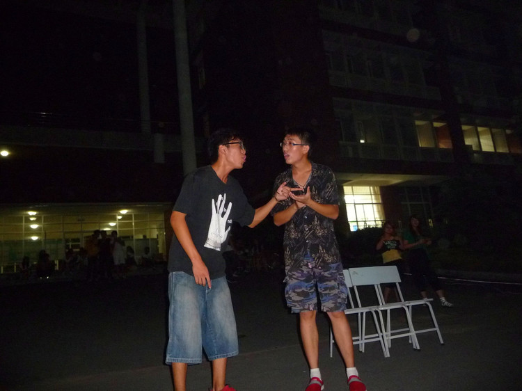 简单而隆重的中秋晚会开始后,理科楼前欢呼声一片。晚会由10级网络二班的卓世平和陆宏志主持,在他俩的幽默风趣的开场白后,同学们精心准备的节目一一上演,大一新生们踊跃上台,为大家带来的精彩吉他演奏《暖暖》、歌唱节目《朋友》等,旋律动人;由青砖协会带来的舞台剧《推销中秋月饼》更让在场观众忍俊不禁,营造了轻松愉悦的氛围。随后,伍接朝和禹敏老师也深受现场热烈的气氛感染,纷纷上台献歌,表达了对新生深深的关爱和祝福,把晚会的现场气氛推向了高潮。最后,大一新生分成两个方阵,相互拉歌,嘹亮的歌声在唯美的夜空回响,学院领导和老师为新生分发了中秋月饼,祝福大家中秋愉快,学习进步。