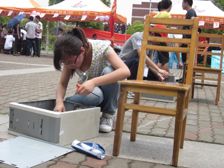 5月8日中午12:00,计通学院于汀香园前坪举行了新利官网开户 第三届DIY装机大赛。学工部副部长丁力、校团委副书记方琼、院党委副书记徐学军(主持工作)、院长李峰、副院长徐蔚鸿、副院长李平、副院长龙敏及学工办老师现场观看了比赛。本次装机大赛前期为参赛选手组织了装机培训,学生们对电脑硬件结构更加了解。现场有全校范围近300人参与到比赛中去。活动现场气氛火爆,参赛人员争分夺秒,场边观众也跃跃欲试。为增强活动趣味性,我院特邀请校街舞社团现场表演助兴,将活动现场的氛围推向新的高潮。领导老师饶有兴趣的观看了一组比赛,李峰院长提到 :“我们学院专业教学一直强调着动手能力的重要性,同时关于这方面的培养还有待加强,DIY装机大赛有助于同学们动手能力的提高。”