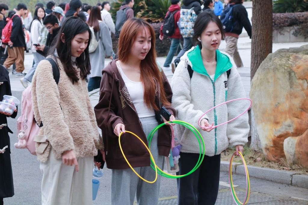 巾帼花争艳,巧手绽芳华。3月8日下午,交通学院在云塘校区工科二号楼前坪开展了节日活动。在“活力套圈”活动现场,同学们以套圈的形式,套中心仪礼品,送出美好祝福;“指上添花”活动也吸引了众多同学的参与,他们用灵巧的双手将扭扭棒制作成小物件,互相展示自己的作品,展现了女性的创造力和智慧。活动现场,同学们欢聚一堂,面带灿烂微笑,纷纷表示,通过参与活动,他们更加深入地理解了妇女节的意义,将勇敢追寻自己的梦想。