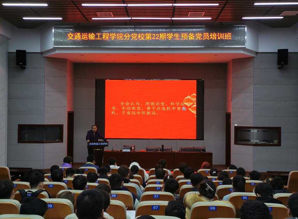 11月中下旬,交通学院分党校举行了第二十二期预备党员培训班党课培训,全体新发展党员参加,特邀电气学院党委副书记任艮丰、马克思主义学院余乃忠教授授课。