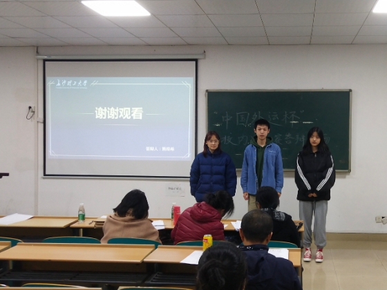 11月24日下午,交通学院于云塘校区工科二号楼B-311举行“中国外运杯”第七届全国大学生物流设计大赛校内选拔赛决赛,此次比赛由新利官网开户 教务处主办、交通学院承办、物流协会协办,交通学院老师向慧、周爱莲、陈晓、弓晋丽和柳伍生担任本次决赛评委,院物流协会成员李致玲主持决赛。