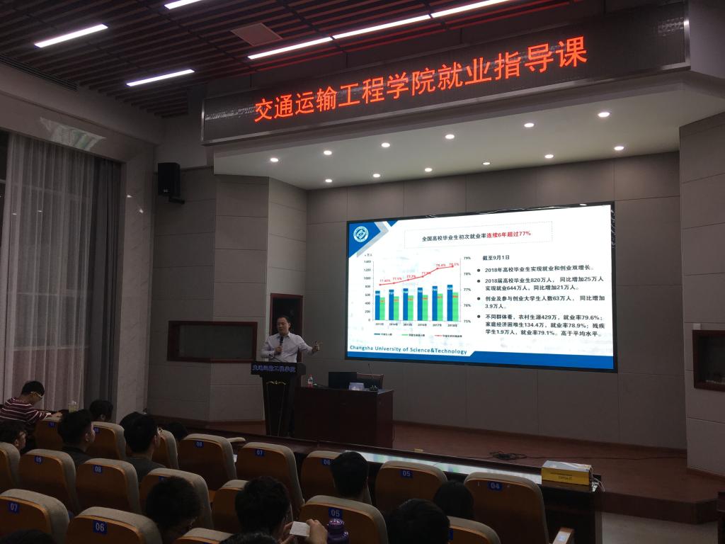 为进一步加强2016级学生对当前大学生就业形势的认识,4月18日晚,校招生就业处副处长贺良在工科二号楼B-301为学生主讲就业形势与政策,道路专业2016级全体同学参加讲座。
