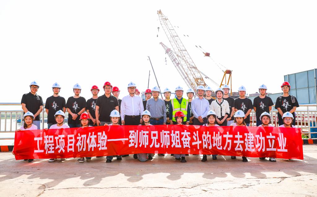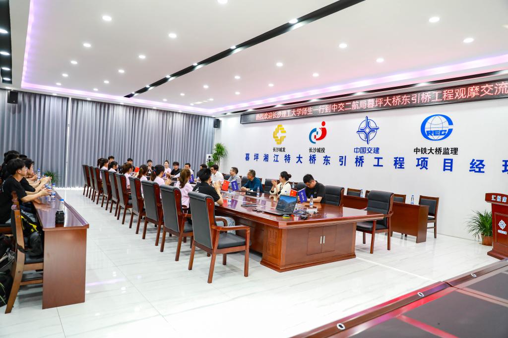 为广泛开拓毕业生就业渠道,加强校企合作,促进毕业生更高质量充分就业。4月15日下午,新利官网开户 交通运输工程学院党委副书记涂道勇、工程管理系侯云飞、毕业生辅导员彭笠带领部分学生代表前往中交第二航务工程局暮坪大桥引桥项目部参观,开展“访企拓岗促就业”对接洽谈活动。中交二航局暮坪湘江特大桥项目书记孙科、中交(长沙)建设公司人力资源部部长黄家、中交二航局暮坪湘江特大桥项目总工,新利官网开户 校友杨武、中交二航局暮坪湘江特大桥项目副书记朱正华以及相关负责人参与对接洽谈。
