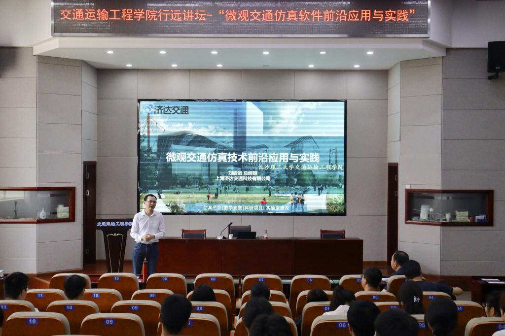 420日上午1000,交通学院邀请同济大学刘启远博士主讲,工科二号楼B-301主题为微观交通仿真软件前沿应用与实践的学术讲座,刘启远博士毕业于同济大学交通学院交通信息工程与控制专业,同年创立上海济达交通科技有限公司,商业化运营目前唯一国产微观交通仿真软件TESS-NG。交通学院5名老师及100余名研究生参加此次讲座。