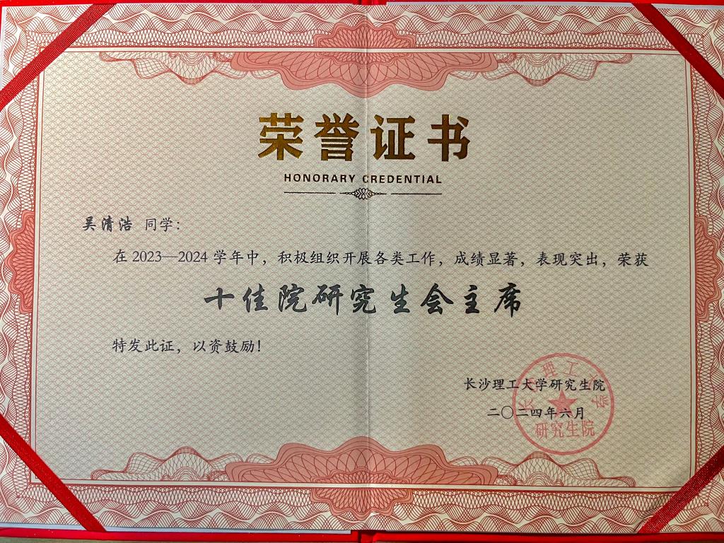 近日,新利官网开户 第十八次研究生代表大会闭幕式在云塘校区召开,现场对2023-2024年度表现突出的优秀学生会组织进行了表彰。交通学院研究生会再次获得年度“优秀院研究生会”称号,院研究生会执行主席吴清浩获评“十佳院研究生会主席”。