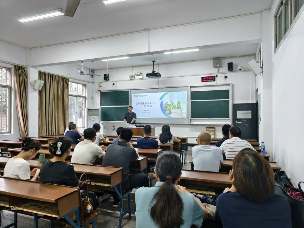为进一步完善“三全育人”体系及班主任队伍建设工作为新学期工作奠定坚实基础9月14日下午,交通学院2025级新生班主任工作培训交流会在金盆岭校区12教109教室举行。学院党委副书记任志祥、年级辅导员聂静、李乐天以及2025级全体新生班主任参加会议。