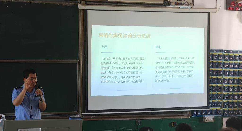 本次讲座是学院加强学生安全教育、构建平安校园的重要举措之一。希望全体班主任和学生干部充分发挥桥梁和纽带作用,将今日所学所获及时、准确地传达给每一位同学,共同织密学院防诈安全网,提升整体防范能力,筑牢校园安全防线。