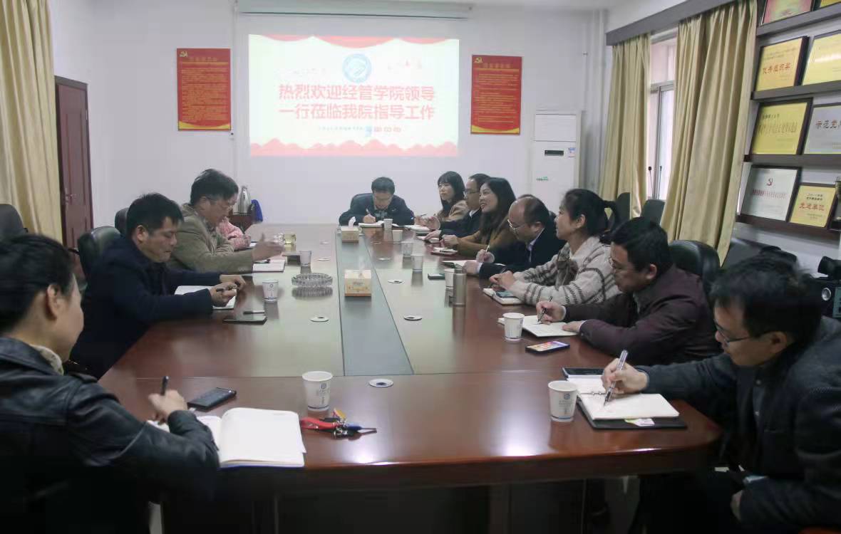2021年11月11日,在15教三楼会议室,继续教育学院与经济与管理学院领导,就办学中的相互支持与合作进行了沟通交流。继教学院邹兴平院长和经管学院丁丹书记、彭星宇院长等各自介绍了本院基本情况,就可能相互支持与合作的事项进行了初步交流和探讨。双方认为,各自办学各有特点和侧重,合作空间大,互补性强,在对社会教育服务方面,可就MBA等中高端培训教育开展良性合作,充分发挥各自优势,实现共赢,并就有关合作项目达成初步合作意向。(文:杨频波  图:蒋寄胜  审:谢士成)