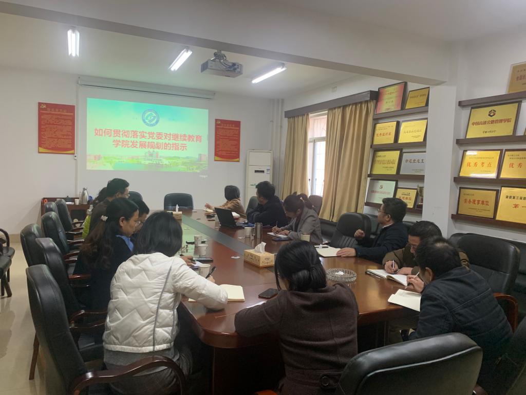 2021118日,继教学院在15教三楼会议室召开班子成员扩大会,讨论如何贯彻落实校党委、行政对继续教育发展规划的指示精神,会议由院党总支书记何纯芳主持,学院党政班子成员和自考、函授、培训及本部助学负责人参加会议。