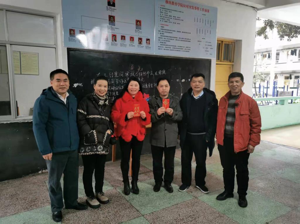 2022年1月31日(除夕)上午,在新春佳节即将到来之际,继续教育学院党总支副书记兼副院长谢士成、党总支委员兼办公室主任易国萍、后勤保卫部和学工部等部门领导对春节期间仍坚守在一线岗位上的员工进行了新年的慰问,并向他们送上慰问红包以及暖心的祝福,同时叮嘱他们做好春节期间值班安排和安全防范工作。