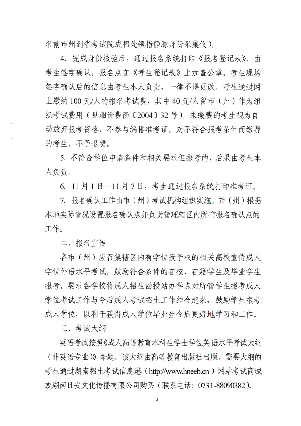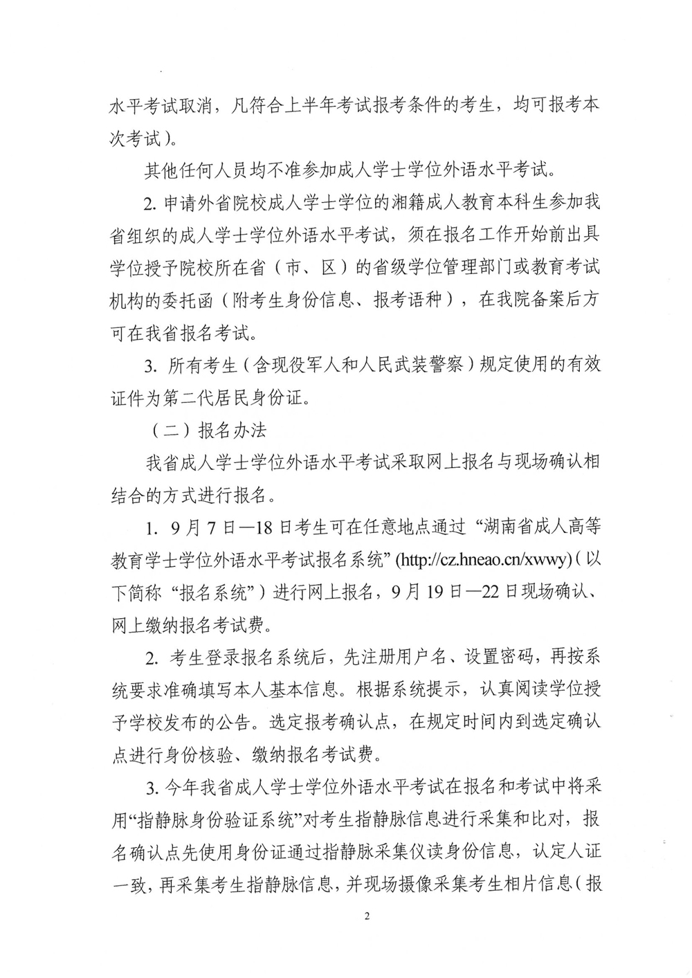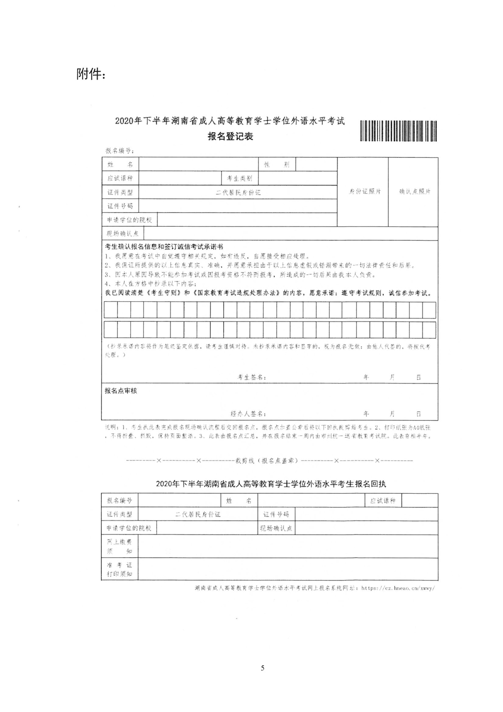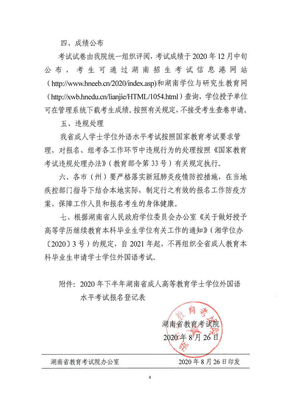 关于我省2020年下半年成人高等教育学士学位外语水平考试报名工作的通知湘教考成字[2020] 1号