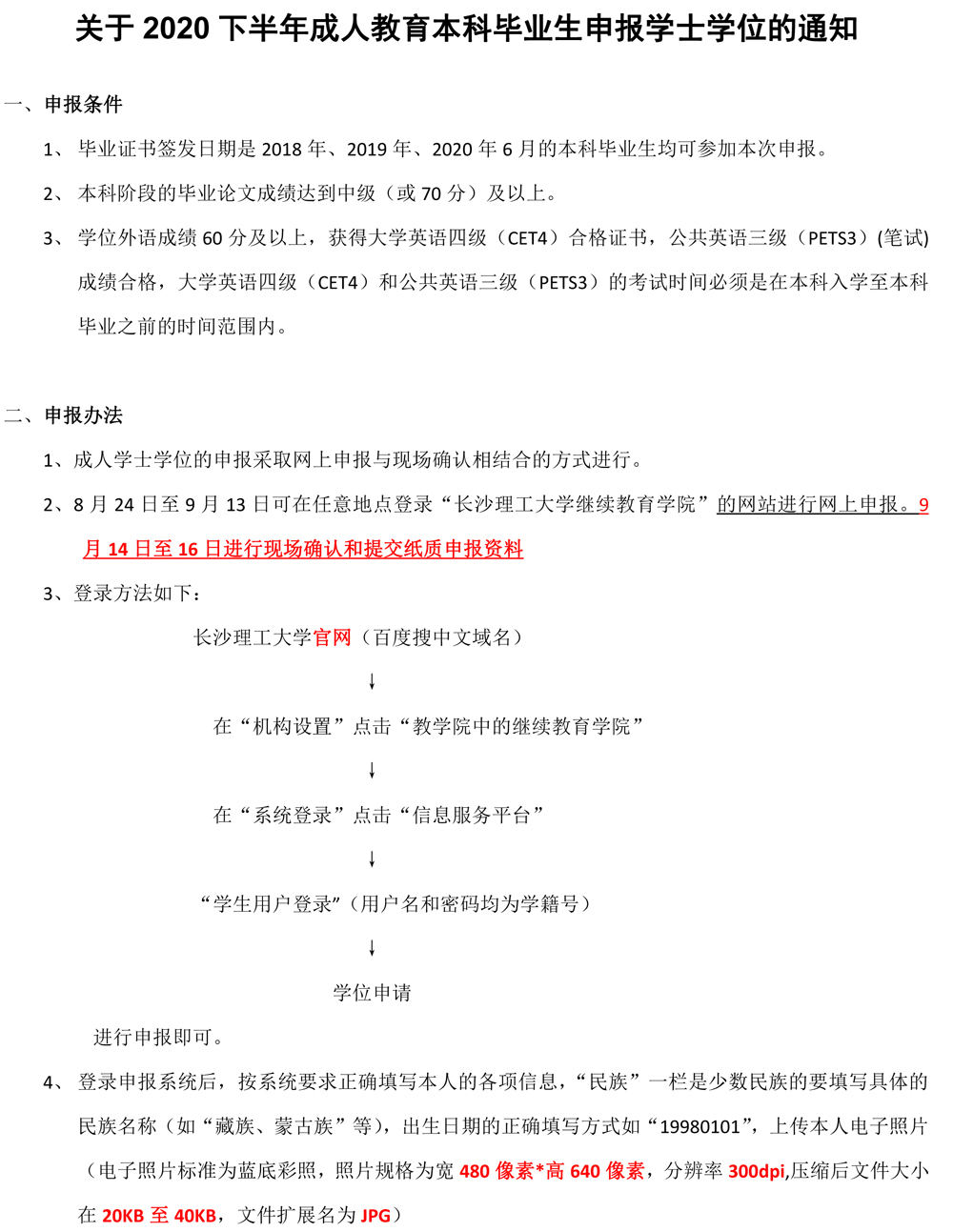 关于2020下半年成人教育本科毕业生申报学士学位的通知