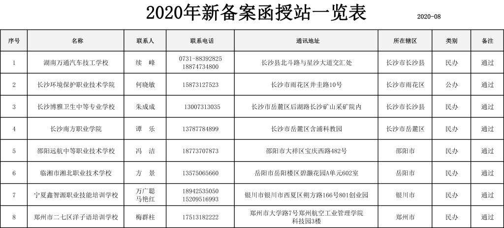 2020年新备案函授站一览表
