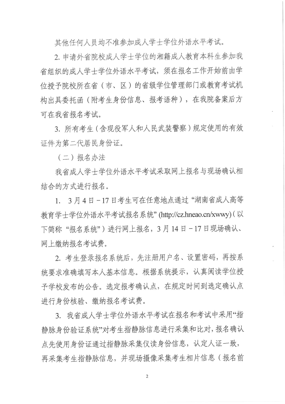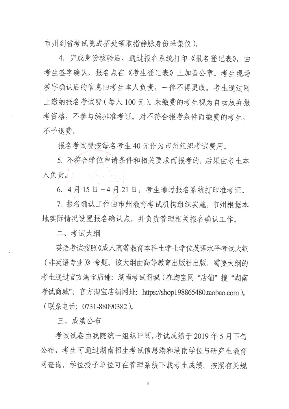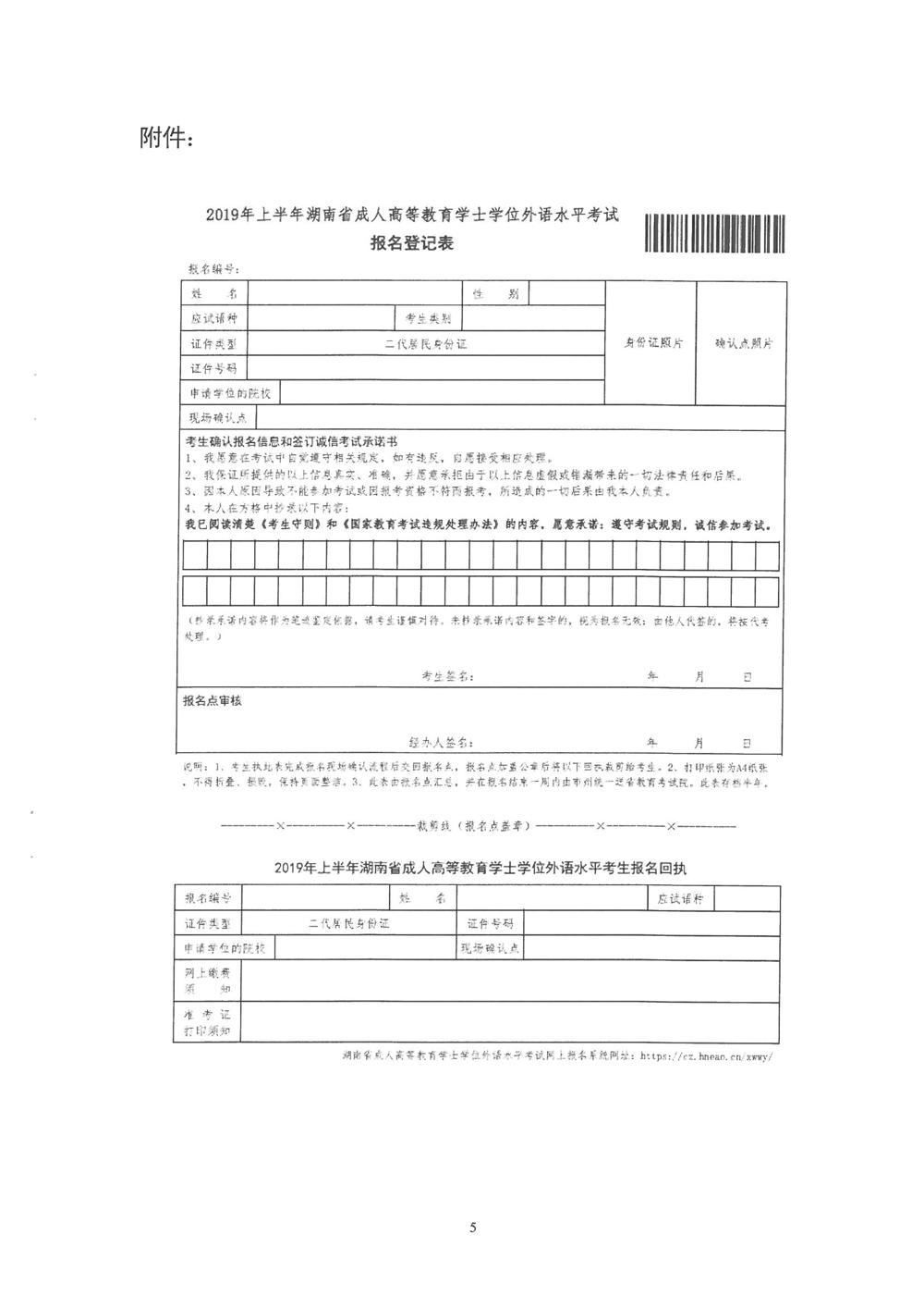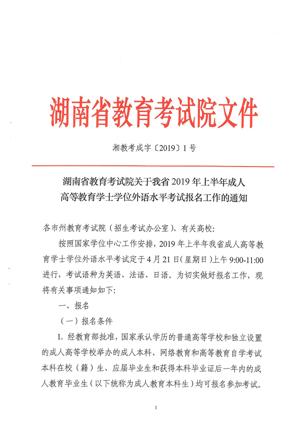 关于我省2019年上半年成人高等教育学士学位外语水平考试报名工作的通知湘教考成字〔2019〕1号