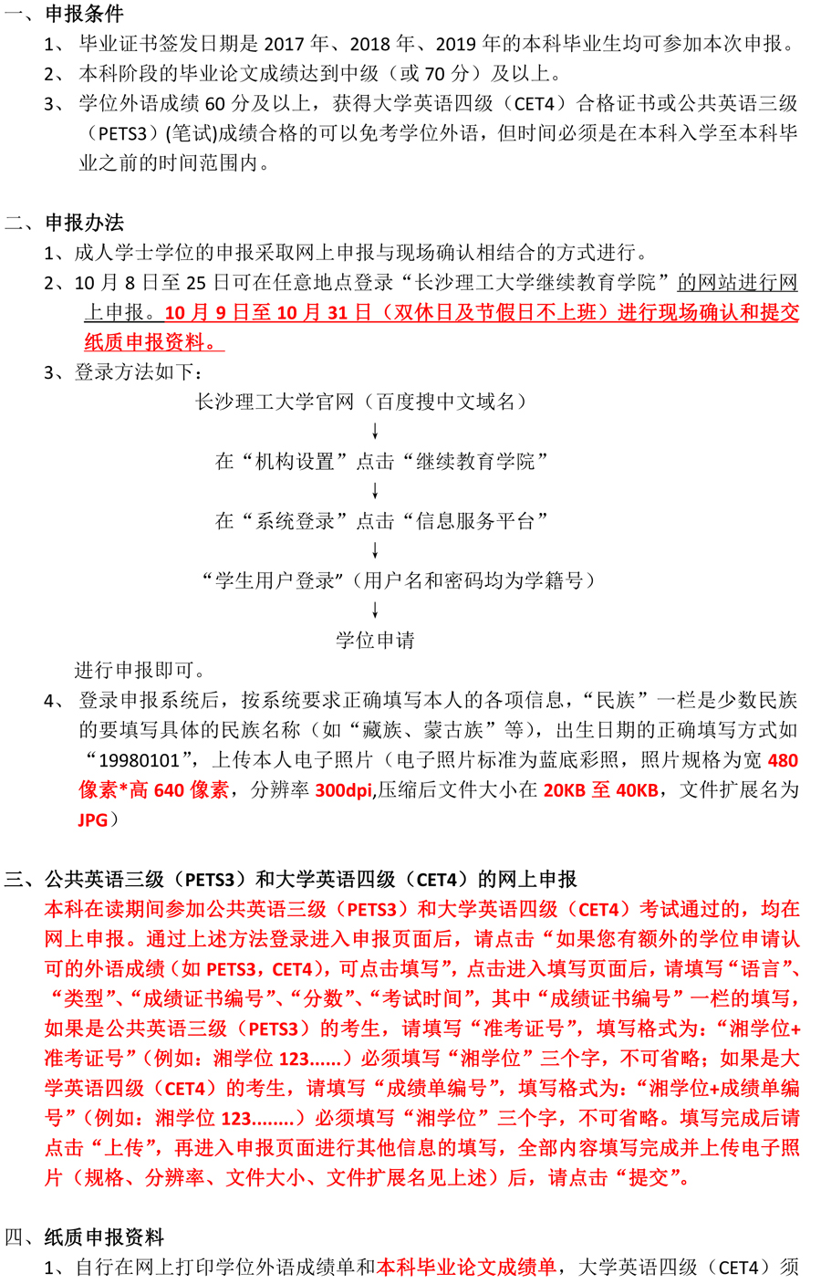 2019年下半年成人教育本科毕业生申报学士学位的通知
