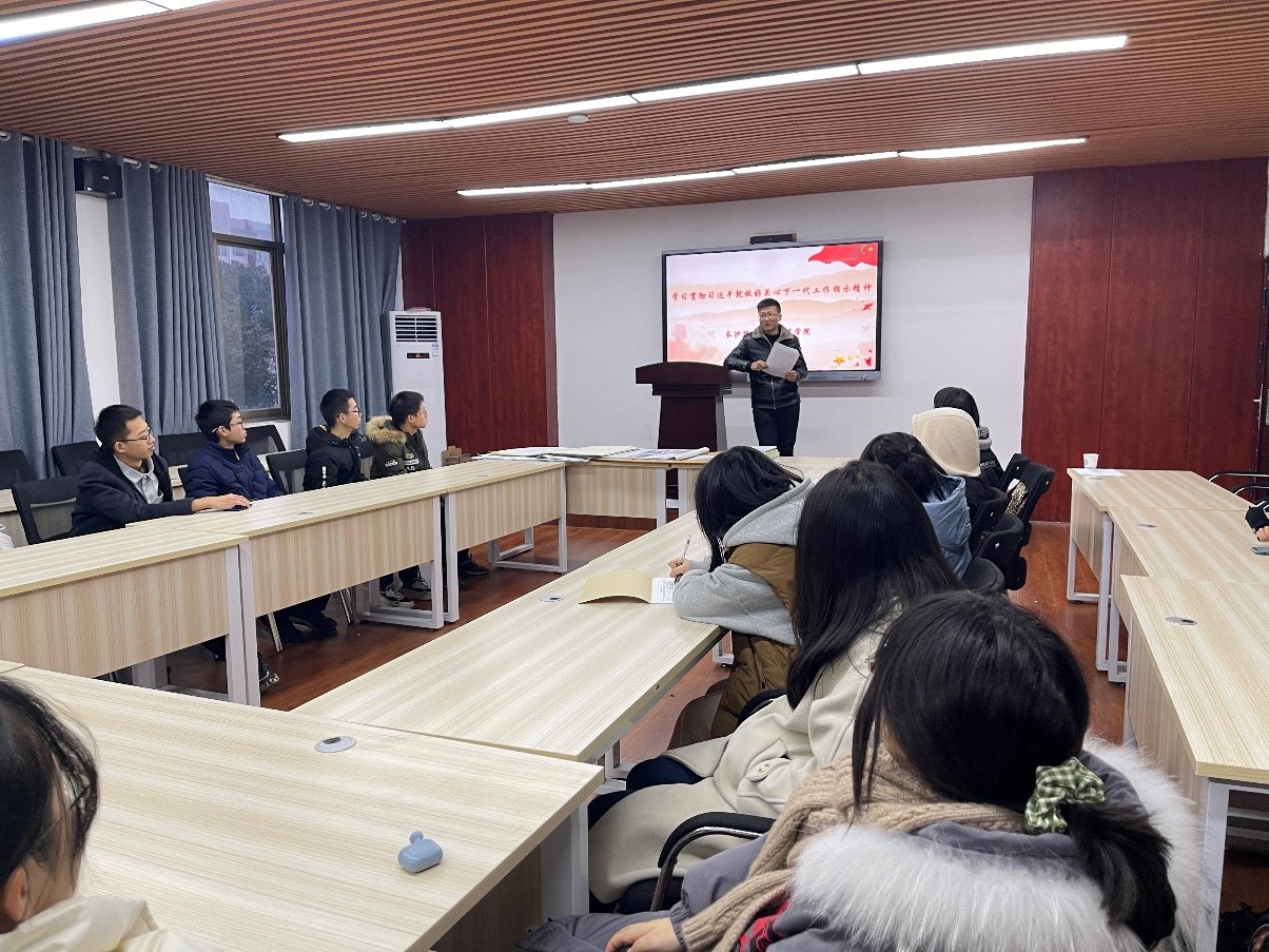 12月25日下午5:30分,建筑学院辅导员郭恒老师于16教314教室,组织开展“学习贯彻习近平就做好关心下一代工作指示精神”座谈会,2020级部分学生代表参加。郭恒老师分享了丽江华坪女子高级中学校长张桂梅的故事,展现了中国“五老”同志们为培养社会主义建设者和接班人作出新贡献的初心和使命。呼吁同学们要增强思想自觉和行动自觉,发扬老同志们干实事干好事的精神,将“五老”志愿服务精神不断传承下去。