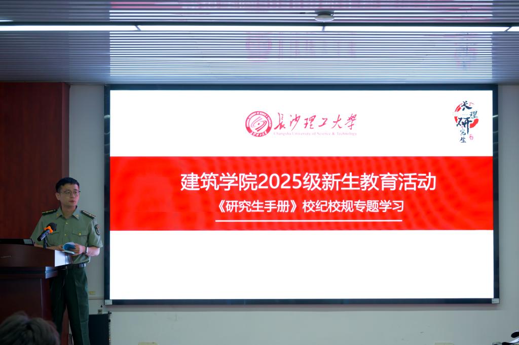 建筑学院在金盆岭校区16号教学楼314会议室组织召开2025级研究生新生安全教育专题会议。会议由学工办王宇霖老师主持并主讲。